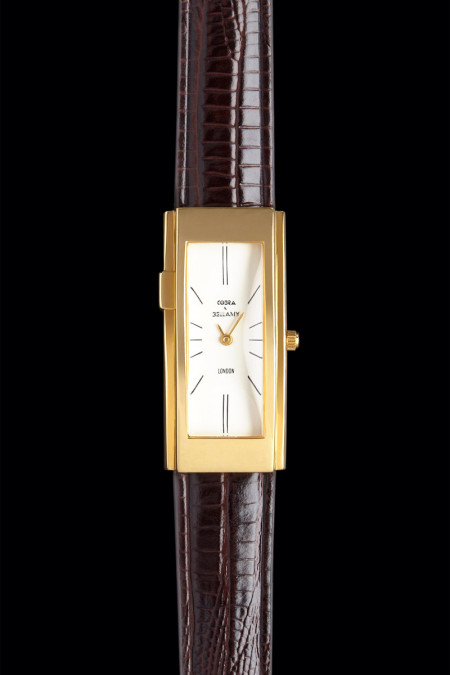 COBRA & BELLAMY – White face, 21ct Gold plated body, Brown leather strap